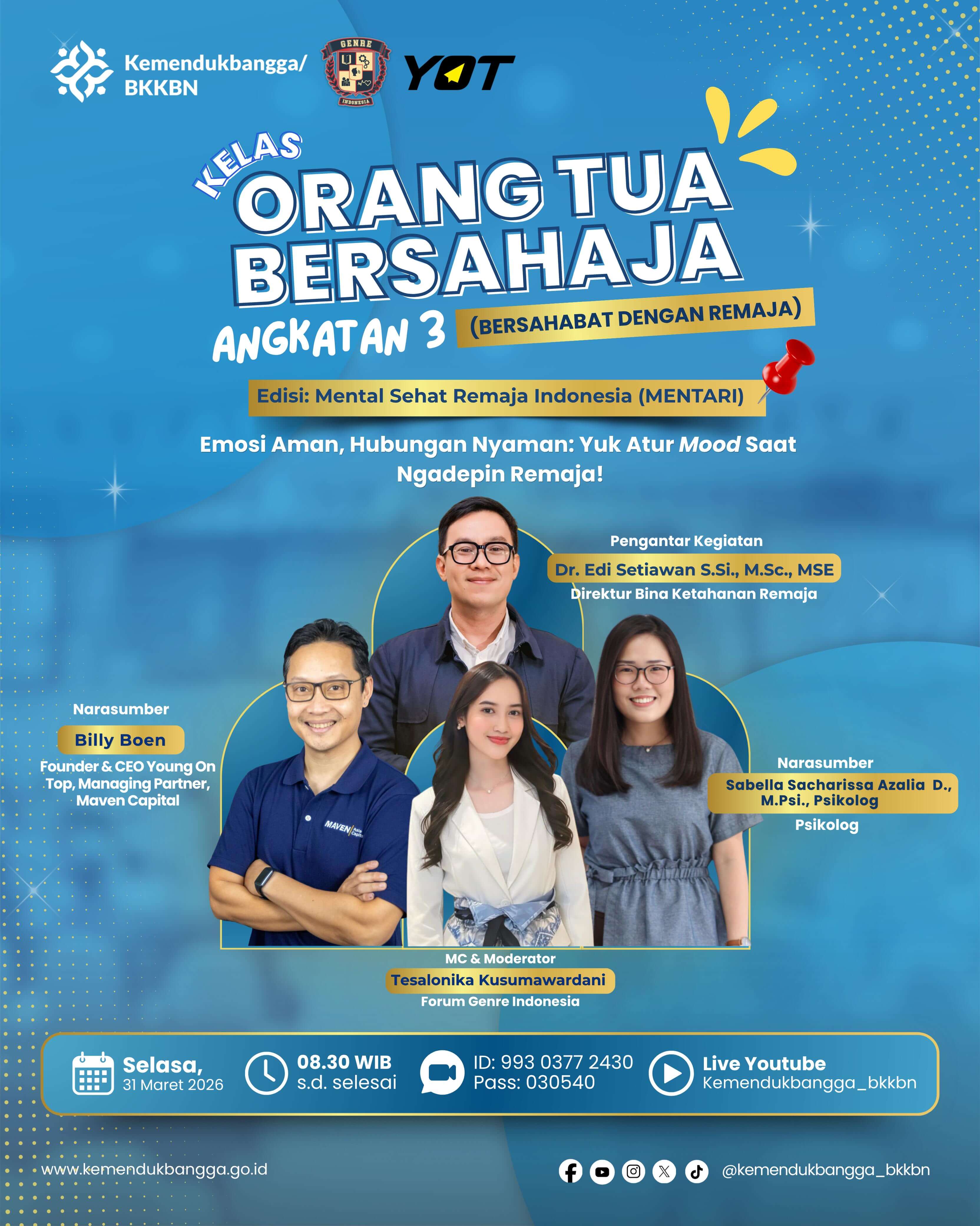 Ayo belajar bersama di Kelas Orang Tua Bersahaja Sesi 3 dengan Topik: Emosi Aman, Hubungan Nyaman: Yuk Atur Mood Saat Ngadepin Remaja !